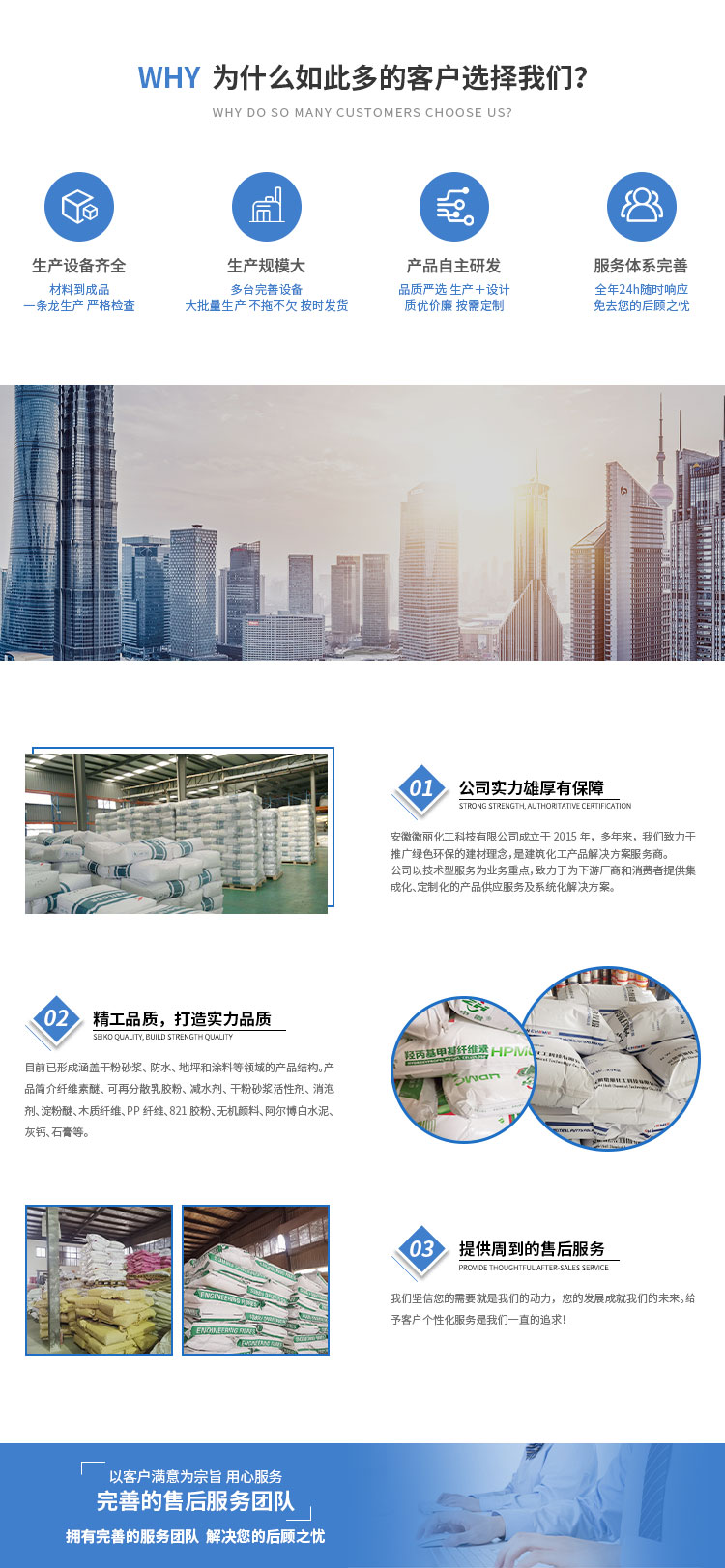 為實踐卓越品質源于科技創新的質量文化。公司經營:鵬凱纖維素、UHPC超高性能混凝土、中徽纖維素、華聯乳膠粉、821中性膠粉、干混砂漿活性劑、德國瓦克、上海惠廣、乳膠漆助劑及日化產品等國內外知名品牌代理。公司實力雄厚,重信用、守合同、保證產品質量,以多品種經營特色和薄利多銷的原則竭誠為光大用戶提供優質服務,歡迎各界人士多方合作,共創明天。
